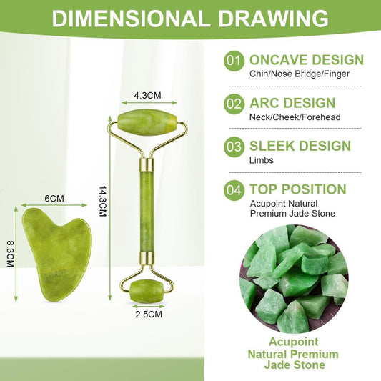 Gua Sha Facial Tools & Jade Roller Set for Face Guasha Tool for Face Ice Roller for Skin Care Gua Sha Stone Board Set for Reduce Puffiness and Improve Wrinkles Self Care Gifts(Green)